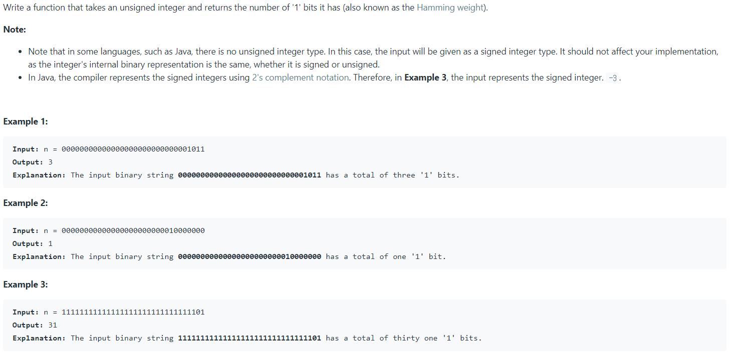 위의 방법을 이용하면 n이 0이 될 때까지 해당 연산을 반복하고 반복 횟수를 리턴하면 1의 개수를 알 수 있다.